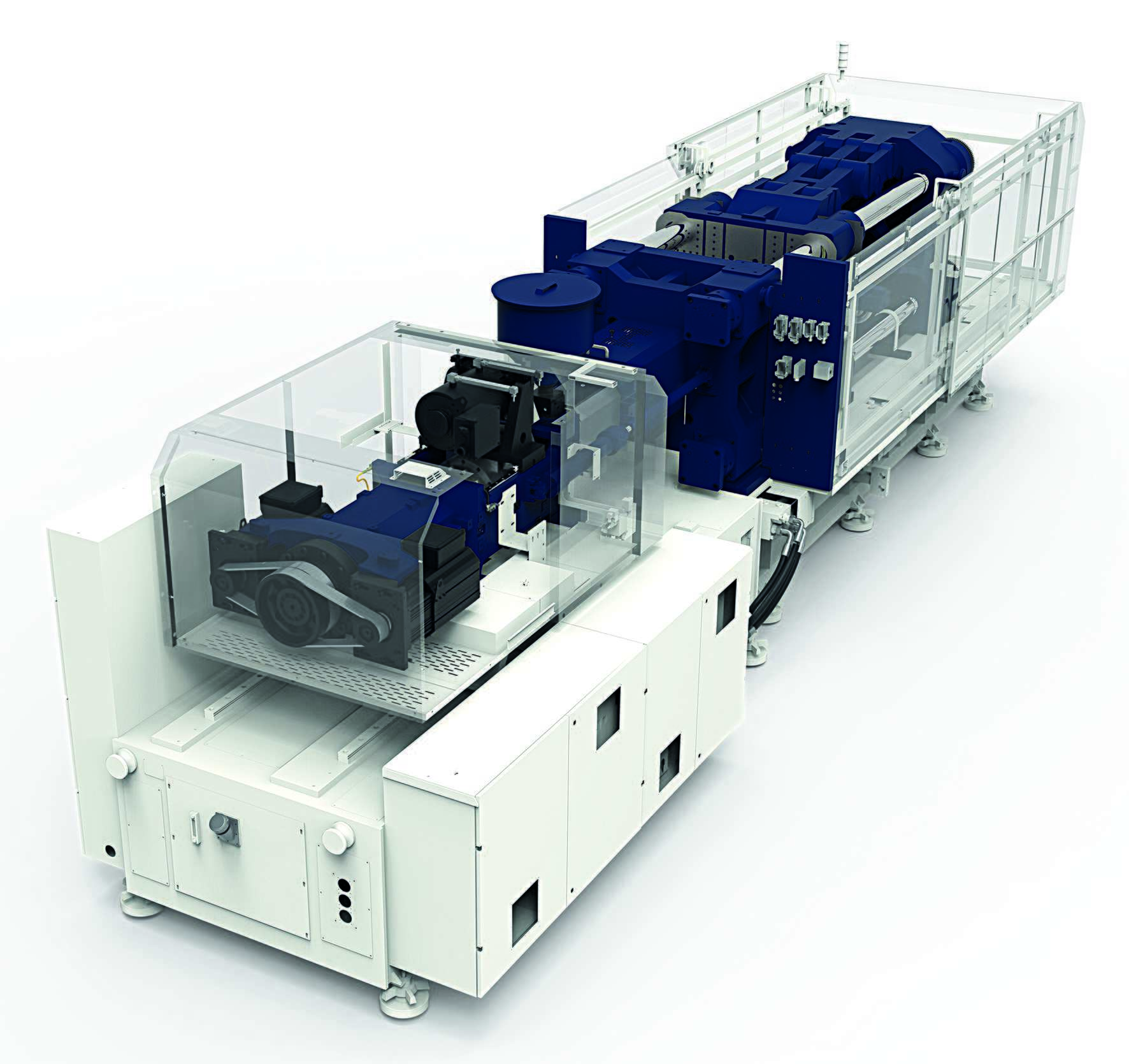 在这个四驱动轴结构概念的大型电动注射座上,采用大扭矩伺服电机直驱多轴控制技术,能够对各种功能强大、稳定可靠,又极具灵活性的部件进行精确控制,从而确保四根驱动轴的精确同步。
